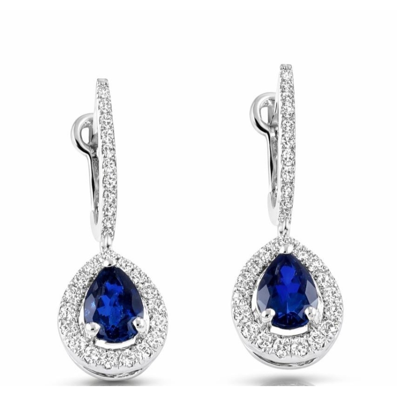 Серьги из белого золота с бриллиантами и сапфирами