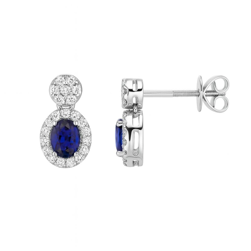 Серьги из белого золота с бриллиантами и сапфирами
